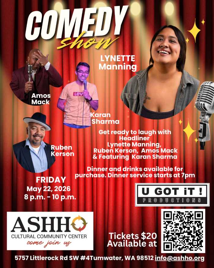 π Friday, May 22, 2026 β° 8:00 PM β 10:00 PM π ASHHO Cultural Community Center 5757 Littlerock Rd SW #4, Tumwater, WA