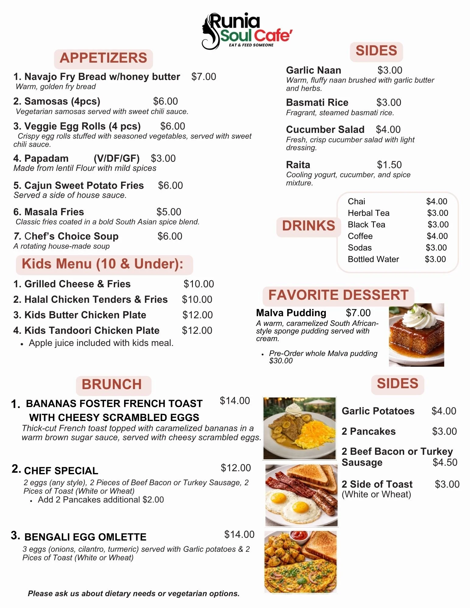 See what’s cooking for our next event at Runia Soul Cafe.